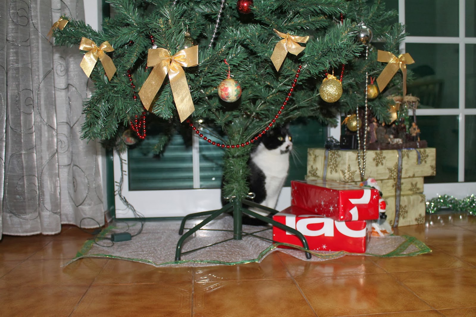 Todos participam de formas diferentes! Eu gosto de brincar com as bolas e fitas enquanto se faz a árvore de natal. Depois da árvore estar feita também continuo a brincar! O Nobita fica sempre ao pé da minha dona a ver tudo o que ela está a fazer. Quando pensa que ninguém está a ver também vai brincar com as bolas e fitas! Os meus donos fazem a árvore, o presépio, penduram as meias e enfeitam a casa.