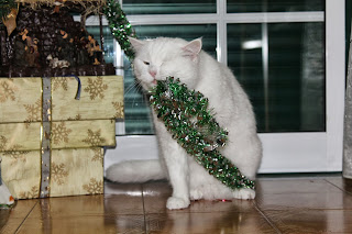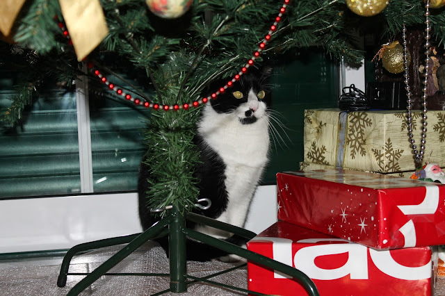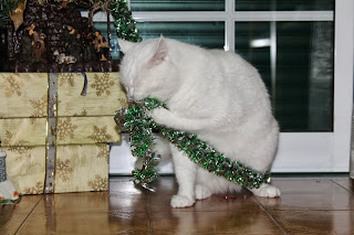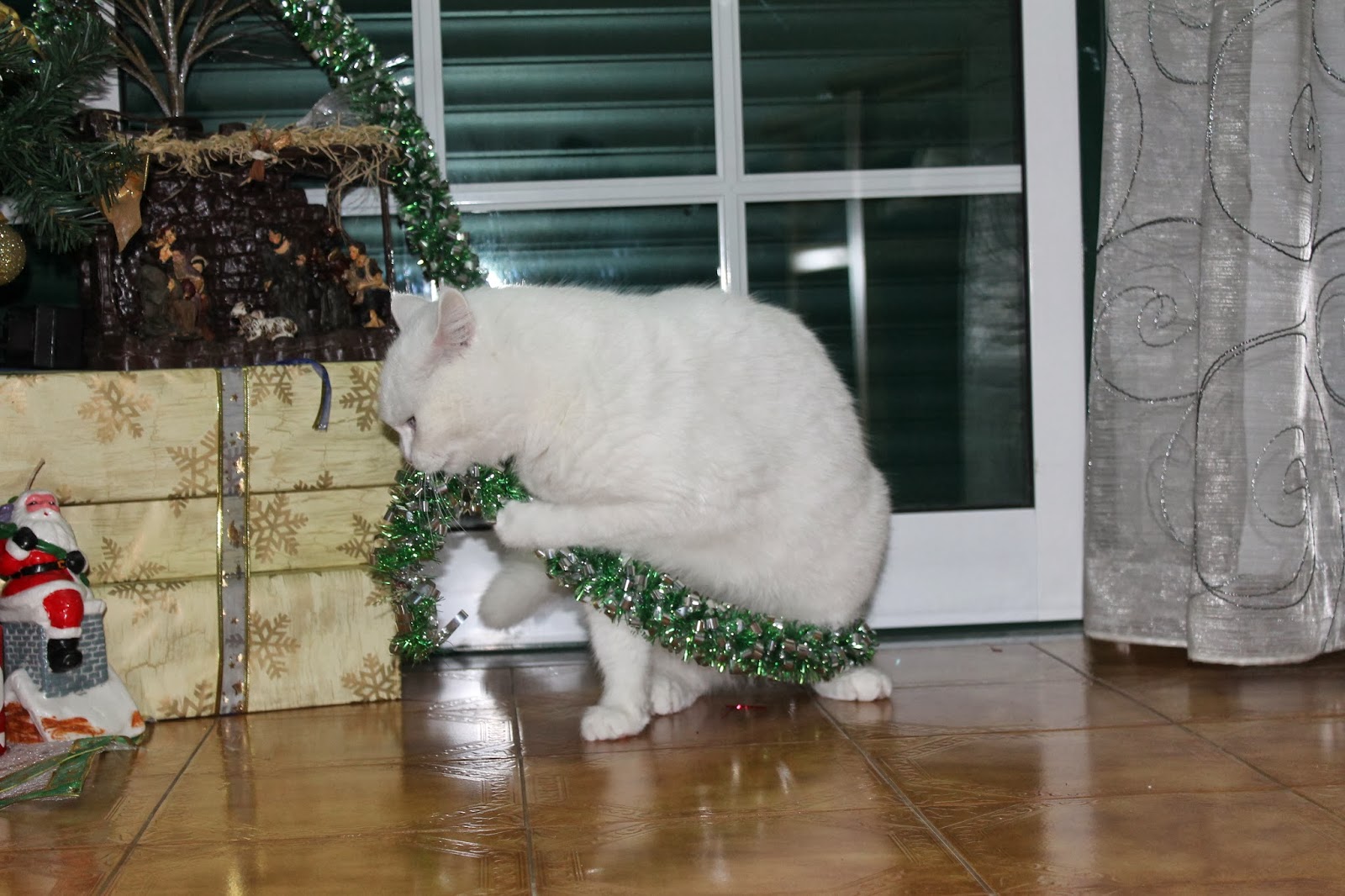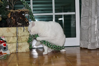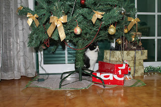 Eu adoro o Natal porque tenho sempre muitos brinquedos, é só ir buscar á árvore de natal! Hoje a minha dona chateou-se um bocadinho comigo outra vez, apanhou-me toda esticada a puxar uma das fitas da árvore e depois quando a puxei caíram muitas bolas e estrelas! Foi tão giro!! Mas não sei porquê só eu é que achei piada...