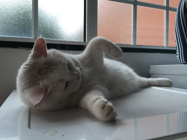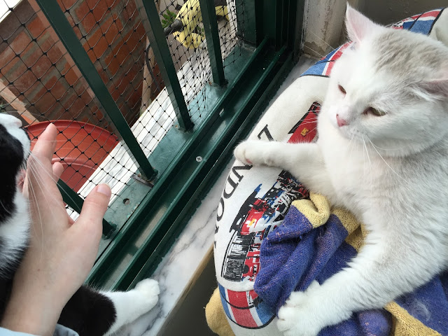 O Nobita como não sai de casa há uns 6 anos gosta muito de me cheirar quando eu venho da rua. Mas neste dia não estava com paciência para as snifadelas dele e chateei-me. Arranhei-o todo.